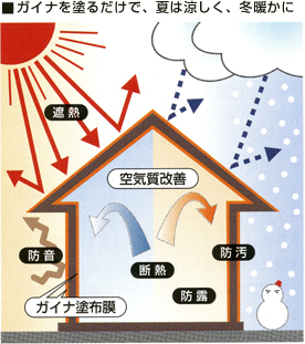 私たちの日々の生活では、夏の暑さや冬の暑さ、騒音など様々な悩みがありますが、ガイナ塗装がもつ特性でこの悩みを少なくすることができるのです。その優れた経済効果も魅力的なサービスとなっております。是非お気軽にお問い合わせください。
