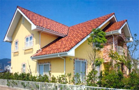 日本の気候風土に育まれ洋風建築にベストマッチ。本物の石州瓦がもつ優れた特性に、エレガントな曲線美を兼ね備えた洋瓦です。
