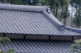 また、焼成時に食塩を投入して、素地表面にガラス状の皮膜を形成させたものを塩焼瓦といいます。